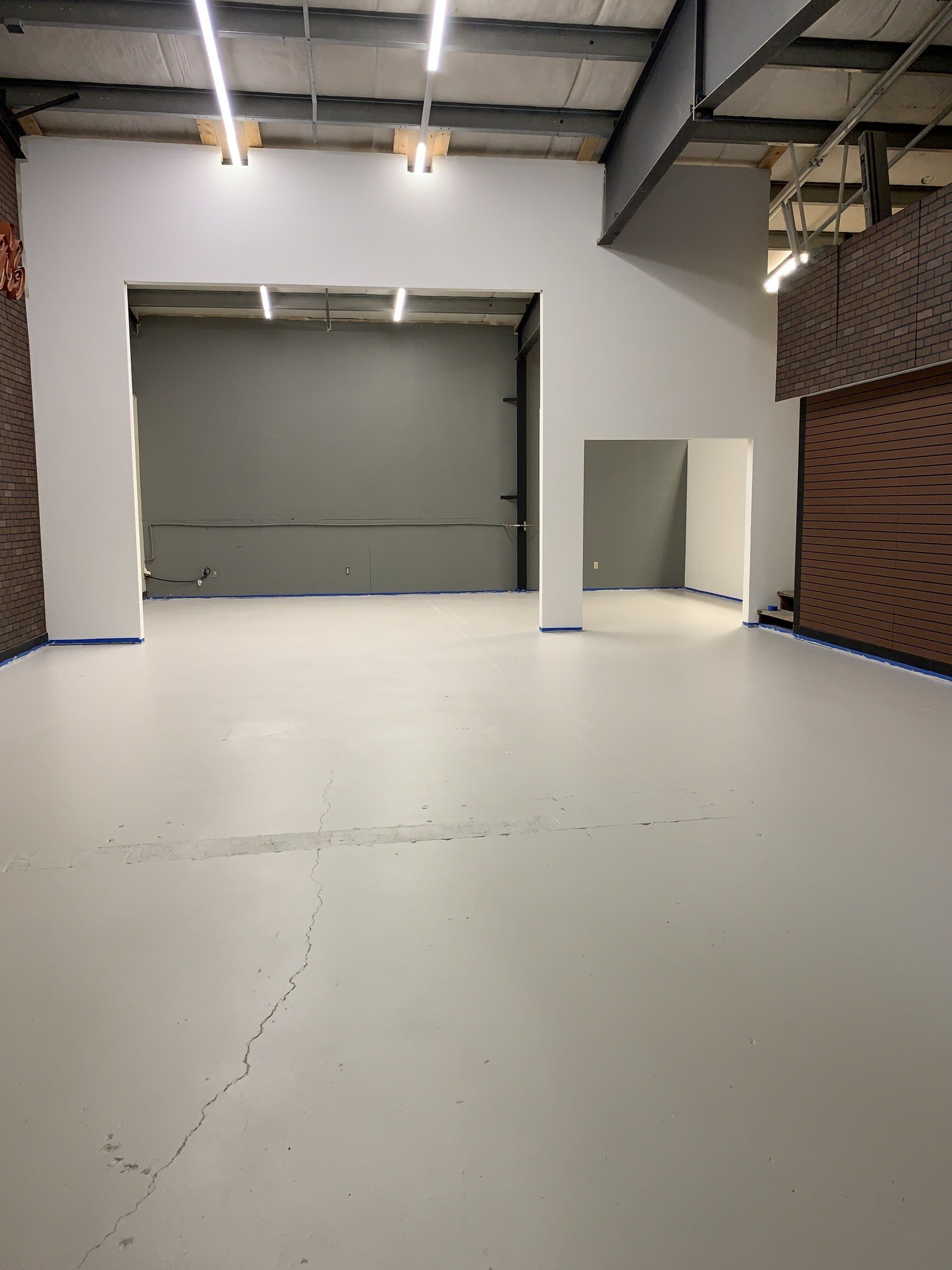 Rob & Mary prepared the new-to-them shop space for R Digital Design & Wenatchi Wear by cleaning the floors, painting the floors & walls and adding new lighting.